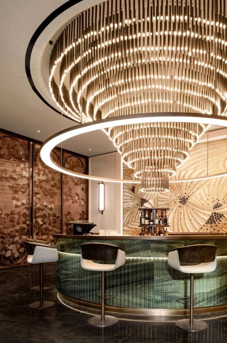 深入挖掘海派文化精髓,以雅柏白大理石柱、定制水纹玻璃灯具重现海上风情。建筑立面采用浅灰石材与浅香槟金铝板,融合现代与经典。园林景观融合欧式古典与海派元素,展现独特魅力。小区会所犹如露天艺术馆,引入知名雕塑家作品,如“海·回声”“流动的盛放”等。从繁花背景墙到特色装饰,色彩与材质的搭配形成和谐美学体系,让艺术融入日常。