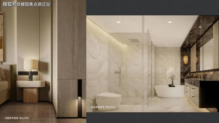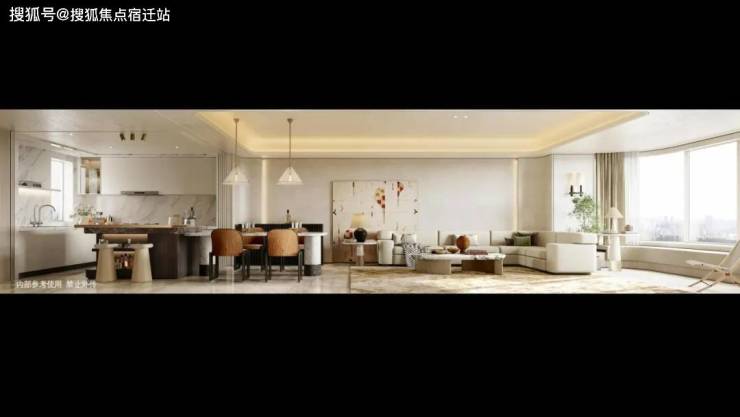外立面大量采用弧形工艺,包括转角玻璃阳台、弧形铝板、墙面线条和大门线条等,致敬了邬达克装饰艺术派的设计美学,同时,约270度转角弧形玻璃也是基于人的需求考虑,能够让空间内部视野最大化,方便住户(部分户型)更好的捕捉璀璨夜景。(因建筑方位、周边规划等因素可能导致户外景观视野存在遮挡,效果以实际为准。)