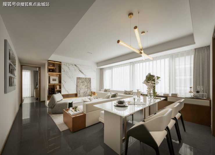 餐客厅一体的“家庭公区”,实现全家庭的功能共享,丰富家庭交流空间,情感无界,提升全家幸福感;约6.4米宽屏双联阳台,横跨客厅与次卧,为家人增添更多明媚阳光和心动风景,在阳台置放一把躺椅、一本书、一个跑步机,在自然风光中静享岁月如歌。