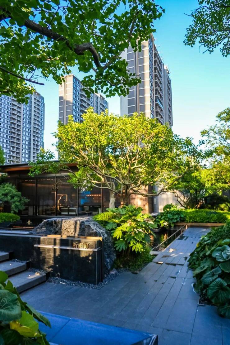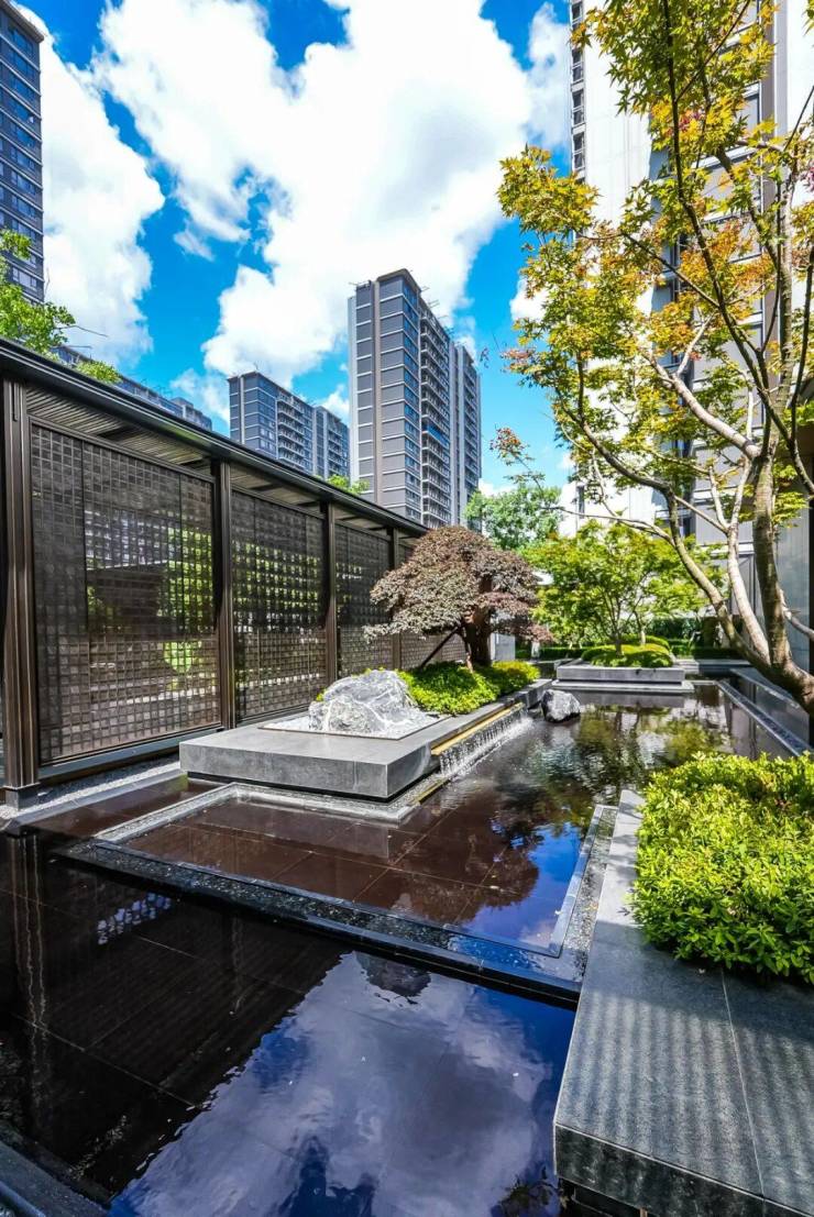 园林造价高达约5000万元,园林师历时90余天,跨越全国多个省份甄选名贵树种。石景用九岭山脉极品黑山石,门头及入户大堂两侧用大象灰石材哑光面和拉槽面。