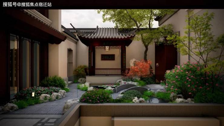 古人言:宅以门户为冠带。门是富贵贫贱、盛衰荣枯的象征,门仪之序彰显家族的等级之分。是给予居者的礼序。府门之外,是四方之志得理想和胸怀;府门之内,是卸下一身繁华的温柔闲适。溪悦阁通过地雕、漏窗等装饰纹样及细节,定制吉祥图腾,肇启祥瑞之风,增强归家仪式感;结合花木、水景、台阶营造打造出“登门望府,致雅归境”的礼序感,方寸之间尽显东方闲逸。