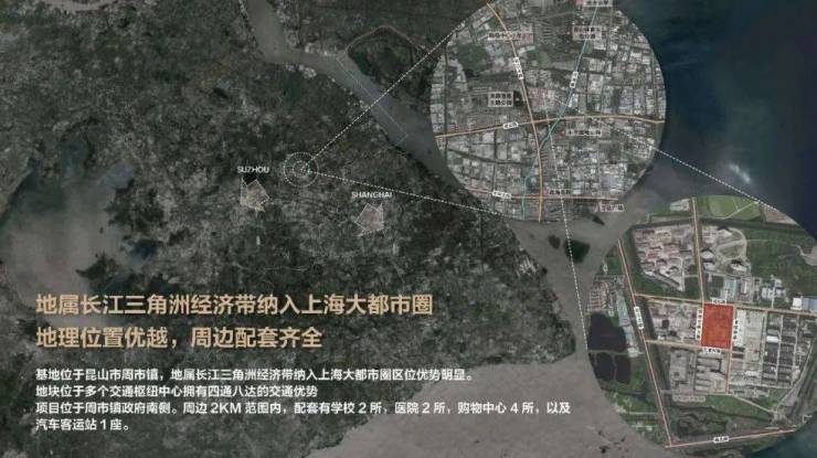 位于昆山城北周市镇板块,配套齐全交通便利。西邻翡丽兰亭花园,南靠孔家村路,示范区位于西南角部可接主干道长江北路,打造昆山首个「堂客厅」住区。