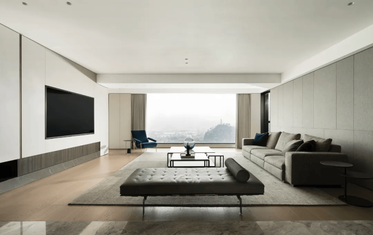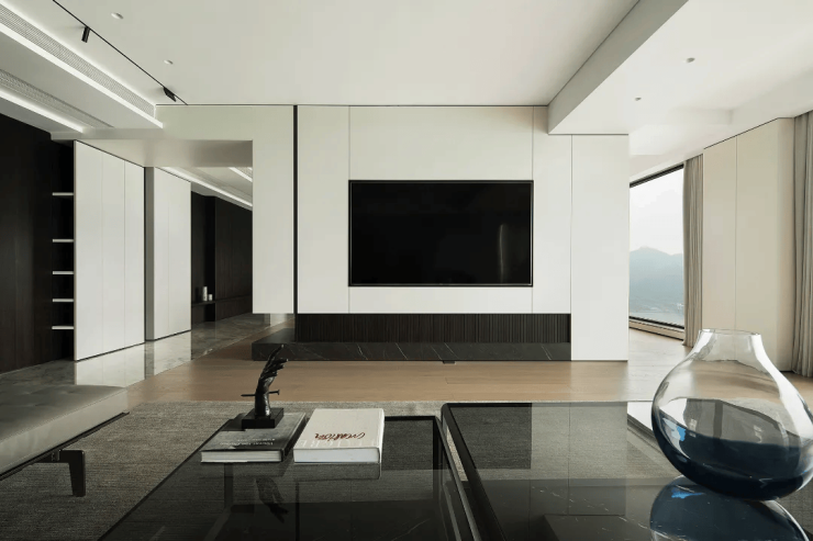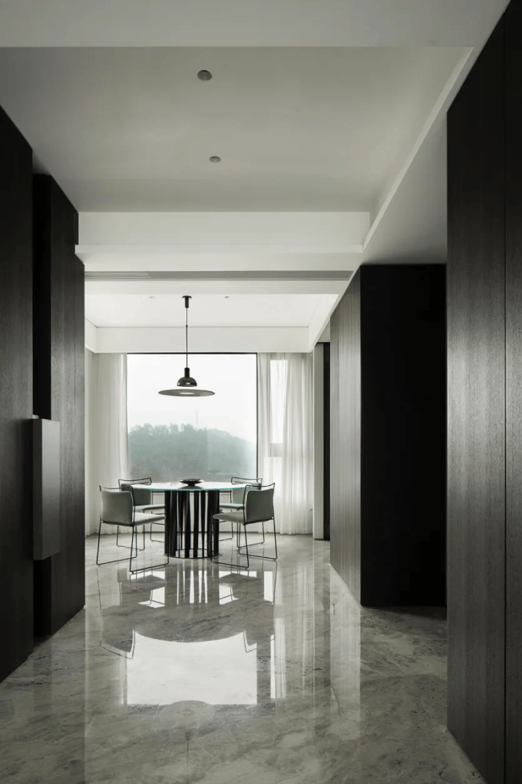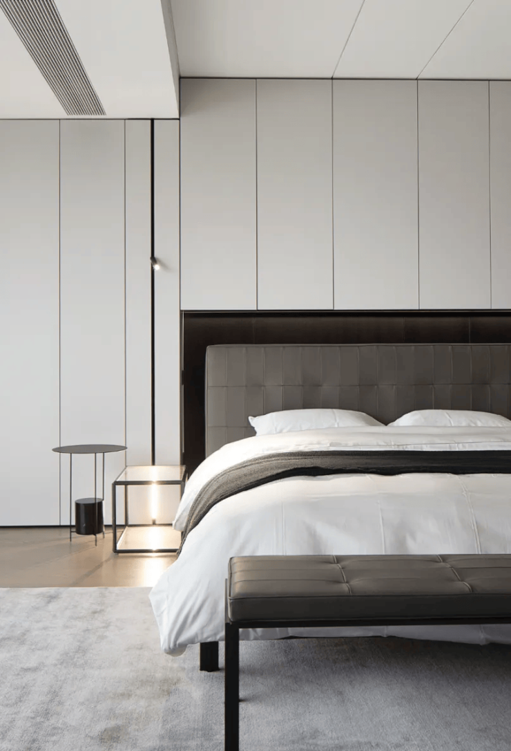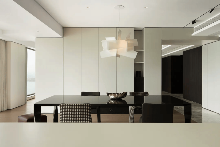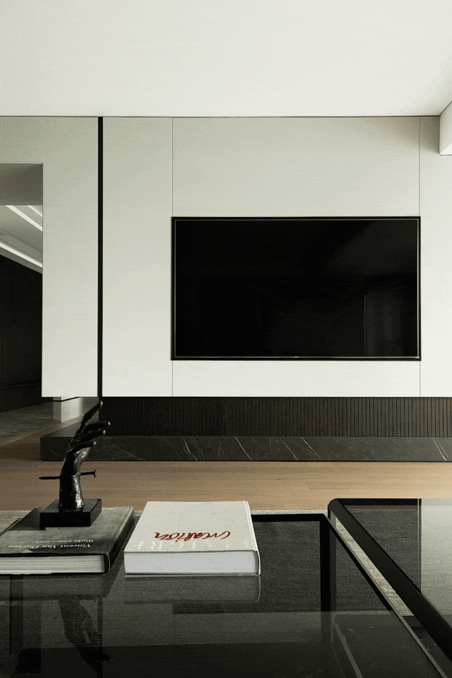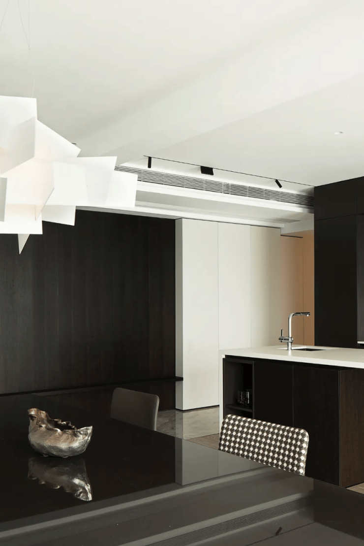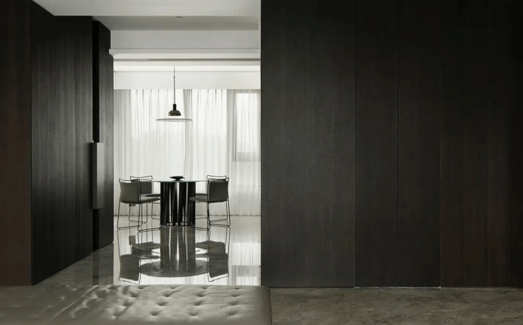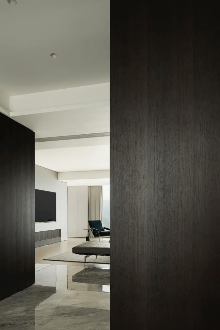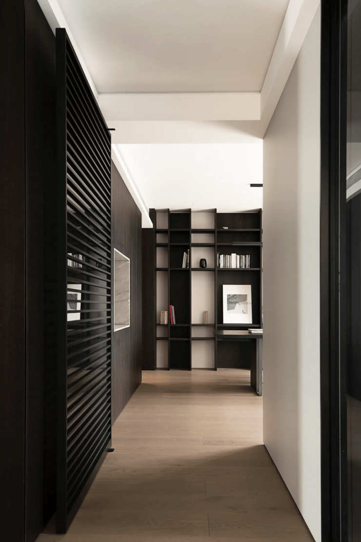 极简主义的设计风格贯穿始终,没有一丝一毫的多余,却充满了细腻的纹理和笔直的线条,将空间划分为一个多功能的空间。