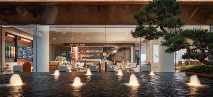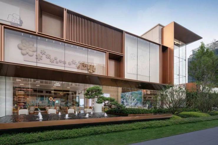 【匠心品控】香槟色蜂窝不锈钢板、高透low-e玻璃、普拉达绿大理石、不锈钢等材料的巧妙搭配,提升了项目的整体品牌价值感