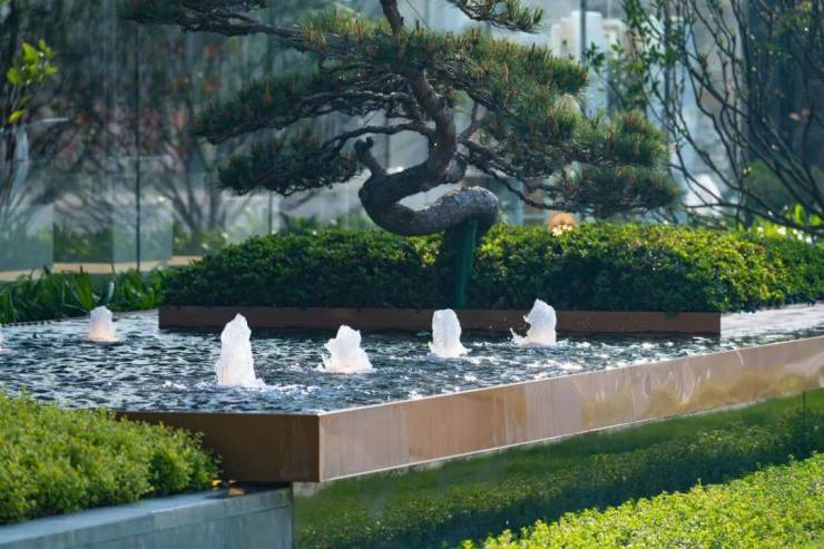 流水招财,劲松迎客。静谧的花园画卷逐一展开
