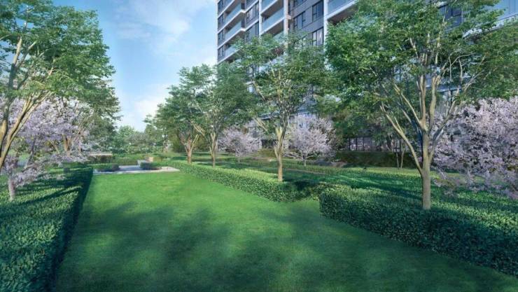 将两栋楼的空间尺度让渡给景观设计,邀请国内一流景观设计公司“山水比德”操刀,以约600元/平的造价,打造超万平CITY TREE都会沉浸住区。