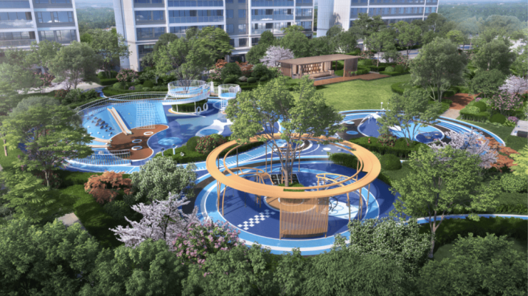 酒店式尊享入口/约2500㎡度假水庭院/约400米尊享轴线/约300米私享轴线