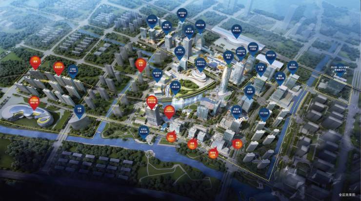 极佳办公视野——南北双水景,毗邻中央水景公园及北河经生态公园,感受城市绿肺。高铁之心会展中心、234米超高层地标酒店等商务集群环绕,一览城市天际线。