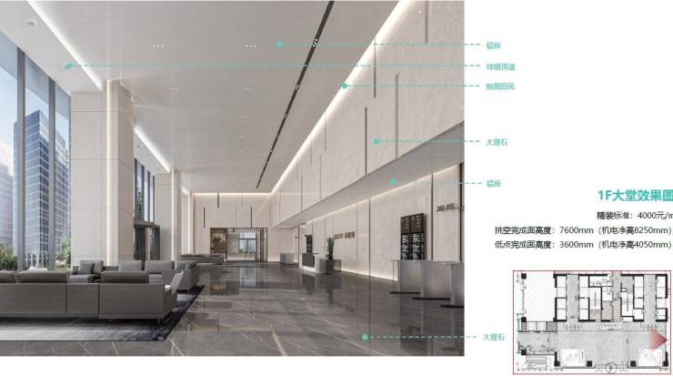 极致产品属性——核心区内甲级商务次地标,总高约150米,大堂9.5米挑高,层高达4.15米,整层面积约1140平-2000平,亦可半层或整层定制,满足各类企业所需。