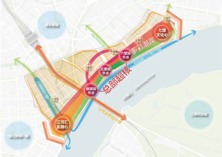 它位于钱江新城以东,是对现有钱江新城的扩容、升级,以“未来总部湾·滨水新潮岸”为目标,建设杭州乃至浙江全新产业高地与都市封面。