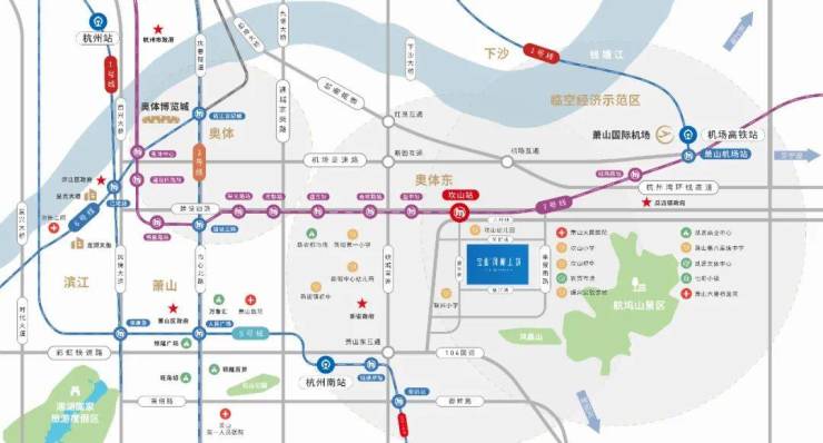 地铁7号线串起了滨萧区域几个最重要的经济引擎,从奥体,到滨江科技城,到萧山开发区,到杭州自贸区,再到萧山机场,这些经济引擎同样也是新杭州人集聚的中心,他们往往会选择在限价2字头的奥体东置业。