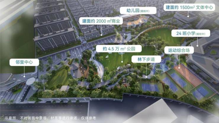 项目总建面约48万方,围绕约4.5万方超级公园,打造幼儿园&公办小学(引进树兰教育集团 合作年限6年)、文体中心、邻里中心、约2000㎡商业街、综合运动场、社区卫生服务站等复合业态,生活配套应有尽有。