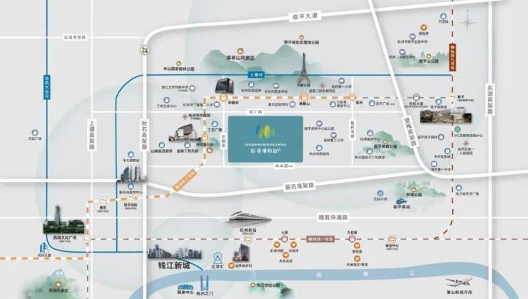 「教育」自建幼儿园、小学、引进树兰集团(合作期限6年)、丁蕙第二幼儿园(白马校区)、丁蕙第二小学(白鹤校区)、光华外国语学校、星华实验学校、星桥中学等(关于学区,需交付后以当地教育局划分为准)「生态」皋亭山风景区、半山风景区、上塘河皋亭千桃园、天都公园、燕子湖生态湿地公园、临平体育公园等「医疗」杭州市中医院丁桥分院(三甲)、浙医二院(临平分院星桥院区)。
