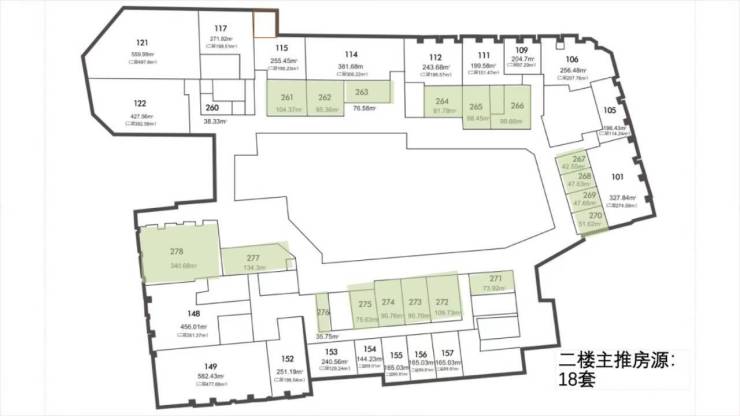 主力面积: 35-120㎡,纯一层、一托二铺,二层、三层