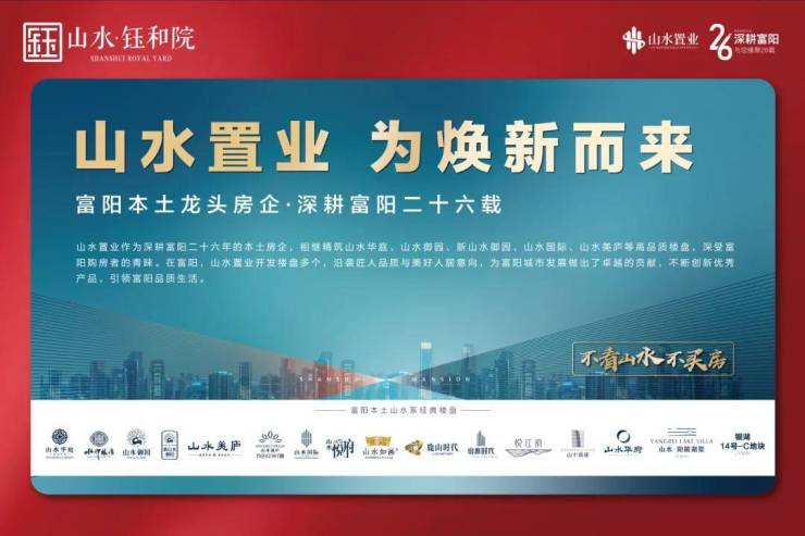 山水置业是富阳本土的房地产龙头企业,深耕富阳已达27年,27年来,山水置业怀着对家乡以及家乡人民强烈的责任感,与城市共发展,开发了十几个优秀的高端楼盘,体量超过了150万方,涉及了上万户家庭,卓越的品质、优秀的物管、业主的信任,让山水置业赢得了“一城繁华、半壁山水”的口碑,非常自豪的说1/3富阳人选择了在山水安家置业,高度的市场认可和占有率,保障了房屋保值度和升值空间。