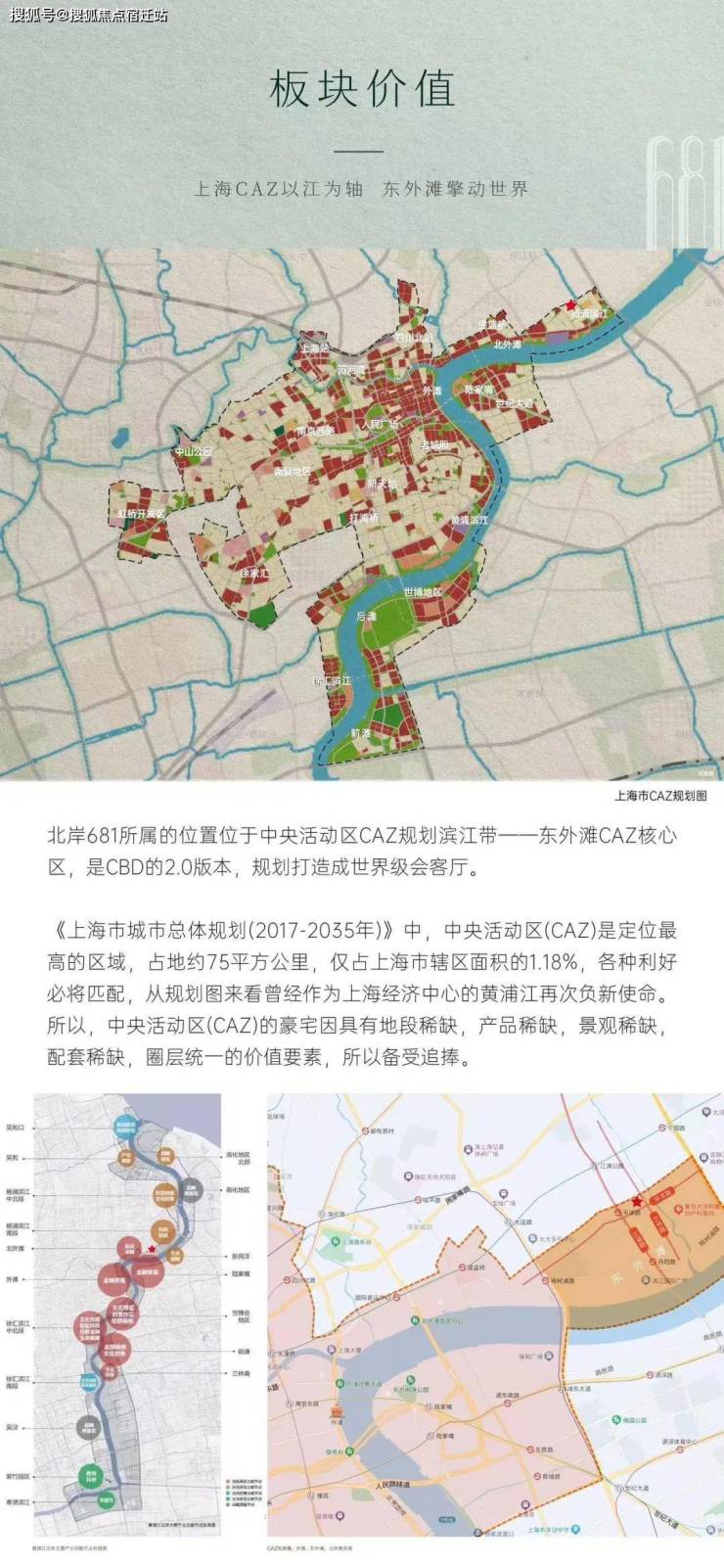 北岸681所属的位置位于中央活动区CAZ规划滨江带一一东外滩CAZ核心