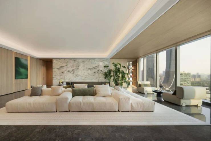 流畅舒展的大平层空间尺度实现内外之间风景的共融对话。