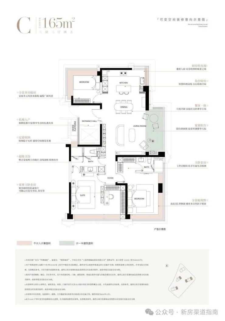 约165㎡户型 超越行业常规,提供了 空间、皮肤、功能、艺术化四大定制系统。