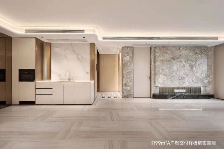 室内空间更是跳出常规色彩搭配,提前考量了餐边柜、扫地机器人预留位、定制衣柜、厨师级厨房与空调系统等贴心细节,让功能与美学自然融合。