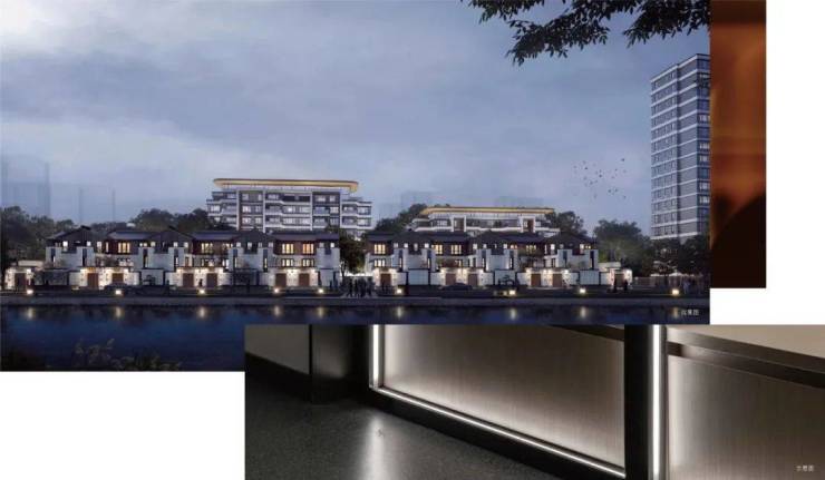 而项目整体建筑布局随河蜿蜒,高低错落的建筑形态也契合了江南水乡的水韵特色。
