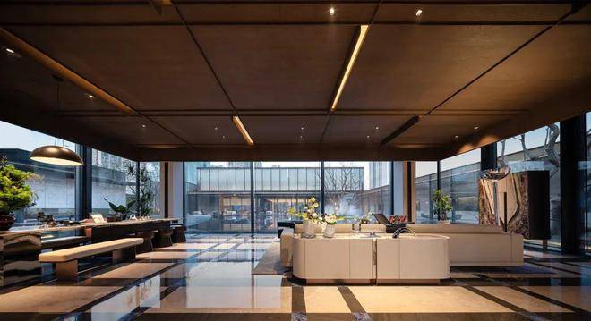 总的来说,走在山川江樾的公区之中,有种游走在艺术馆的微妙错觉,每一个摆件、每一处展陈都好似展览,而这也正是项目高级所在,将艺术审美融入到空间的方方面面。