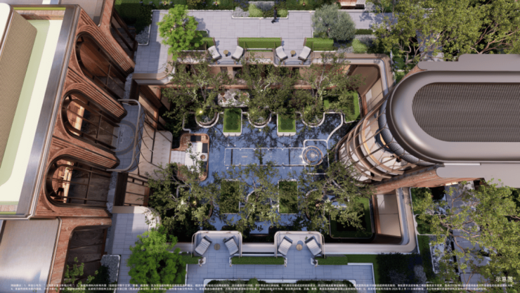 景观由朗道设计打造,与建筑风格统一,以摩登鎏金海派庄园为主题,通过五大节点营造精致雅奢的海派园林。