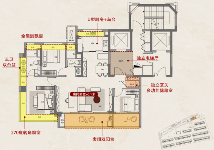 ①一梯一户,独立入户;