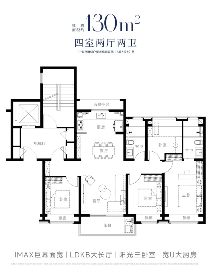 建面约103㎡的户型“三开间朝南”+“3大飘窗”的格局保证了整个户型的采光面和居住舒适度。