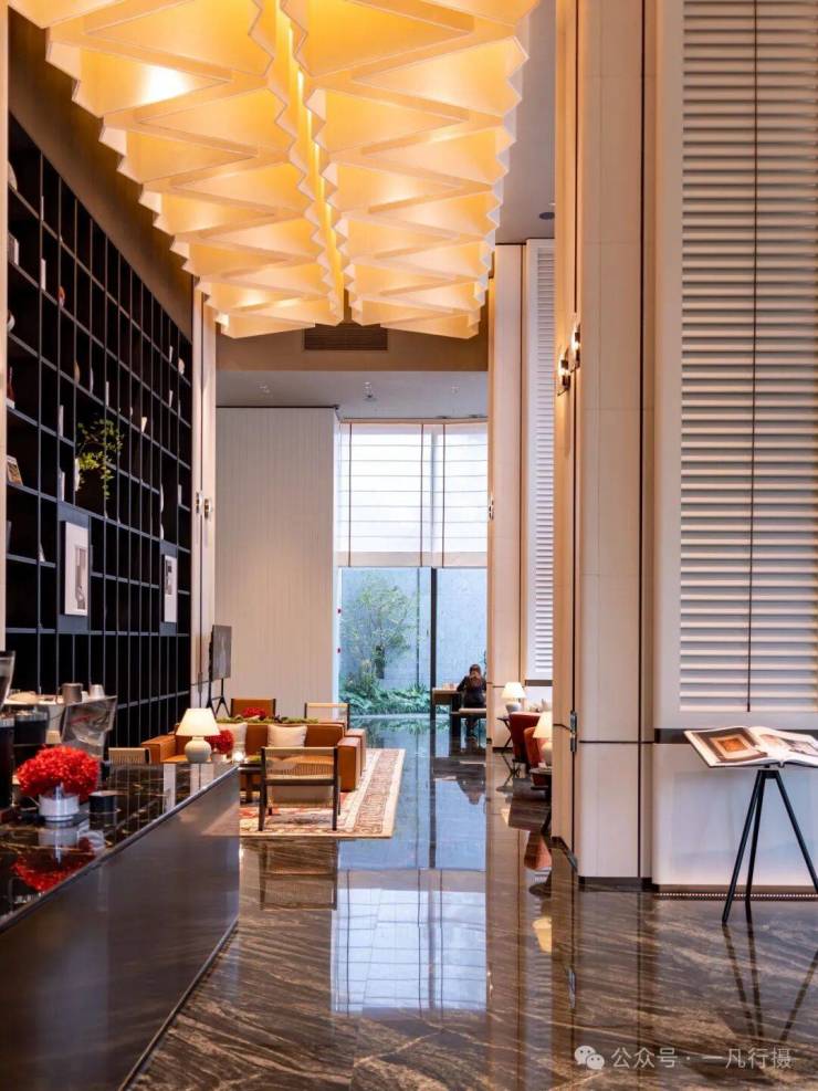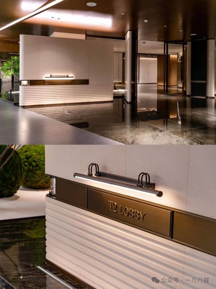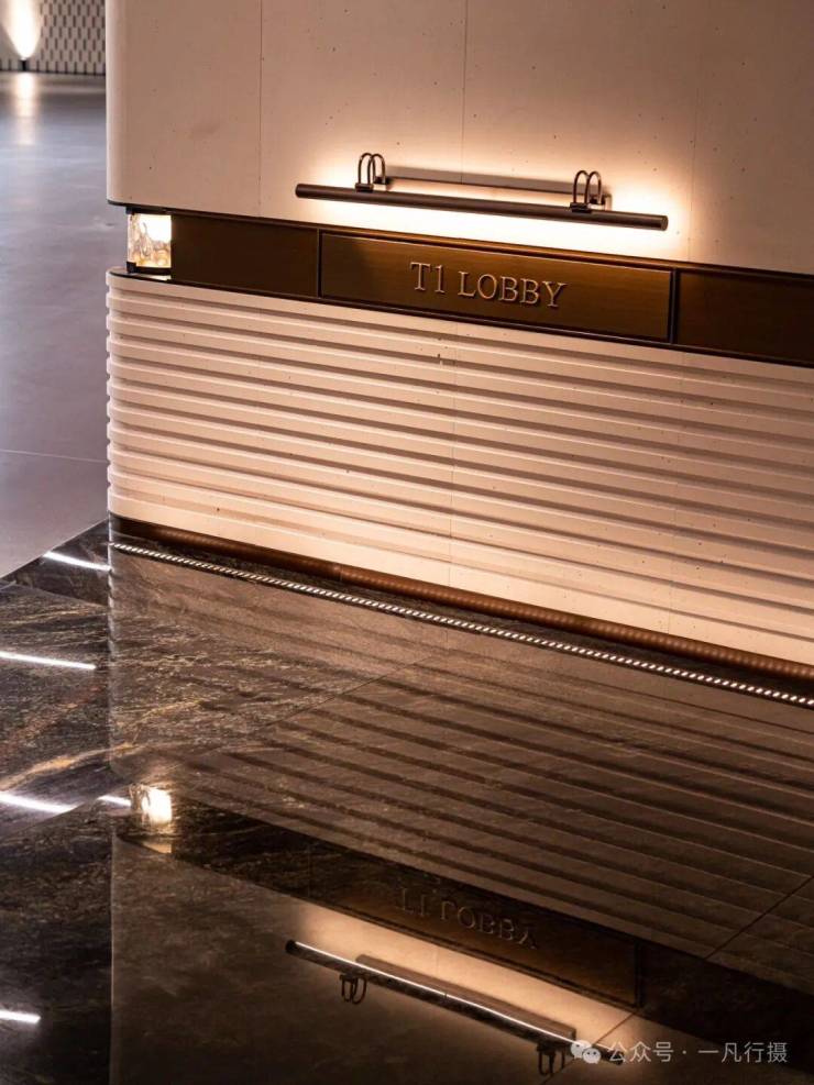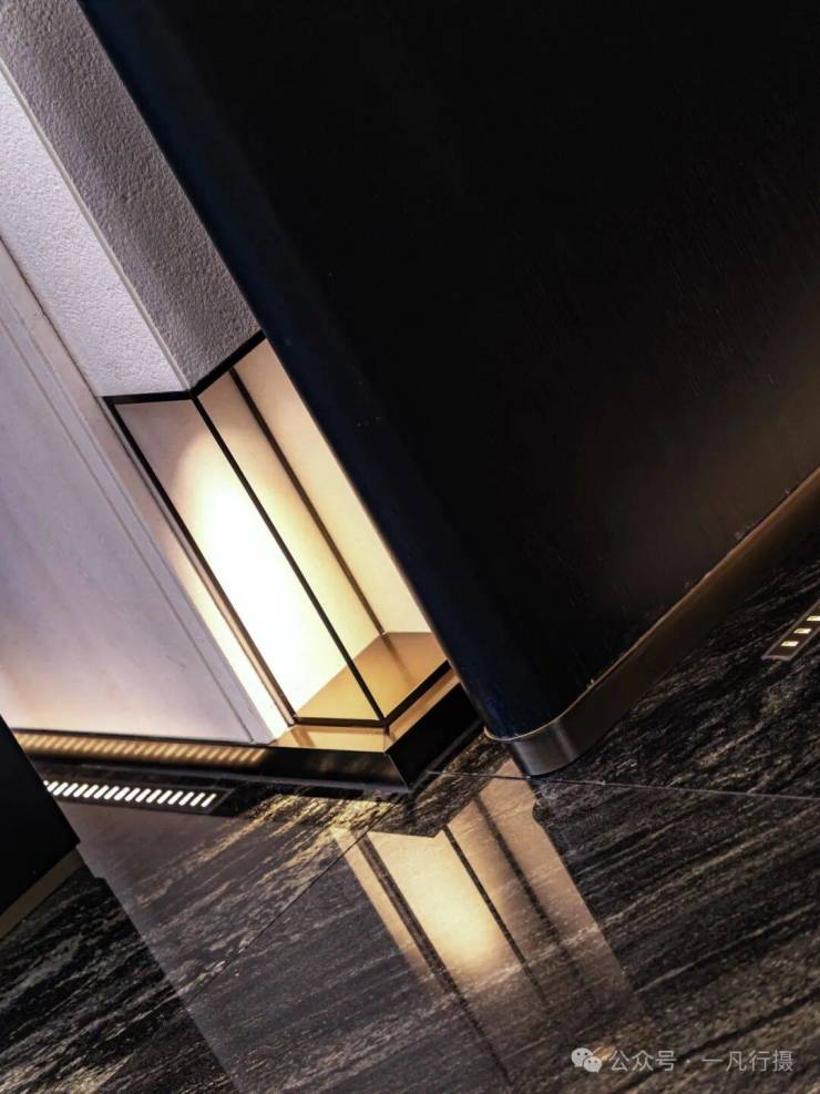 地库设置了站台式落客区,酒店大堂私属的入户空间。全铝板吊顶,环氧金磨石地面,马尔斯绿奢石景墙,让人步履间熠熠生辉。