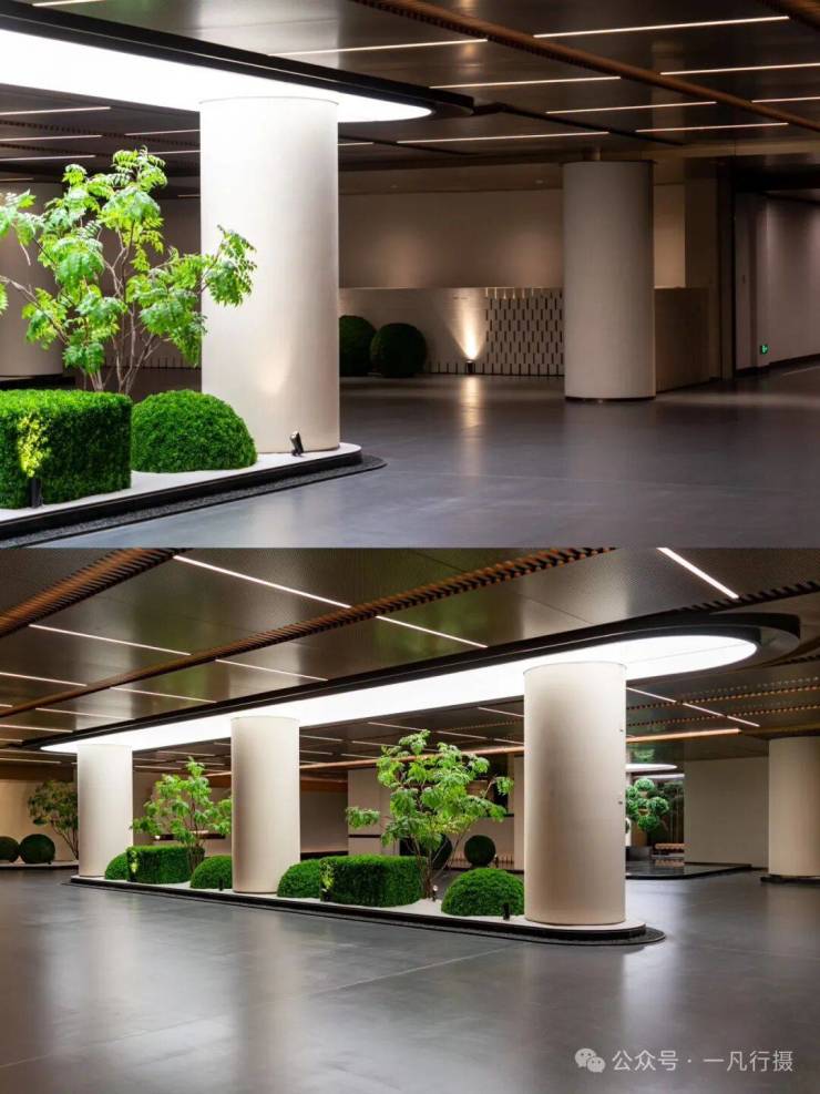 以水景、绿植、仿日照灯光系统,打造出别具一格的庄园地库,像极了名车的艺术展厅。