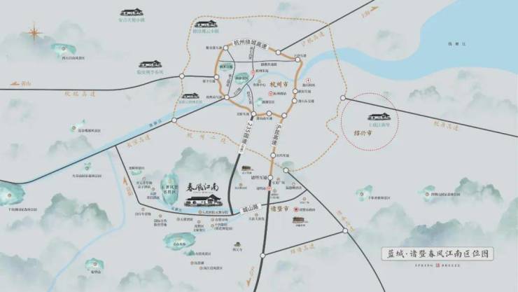 随杭州开启“拥江时代”,城市向南外拓,诸暨融杭开启快进模式。蓝城·诸暨春风江南位于诸暨融杭先行区,多维交通,为双城生活加速。