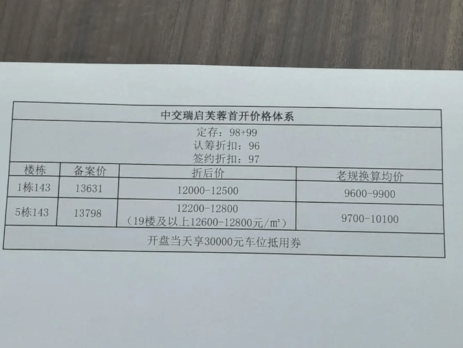 中交瑞启芙蓉项目首开价格体系信息,分享给大家。