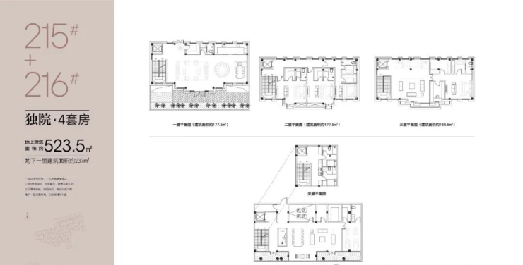 215+216#地上建筑面积523.5㎡户型如下: