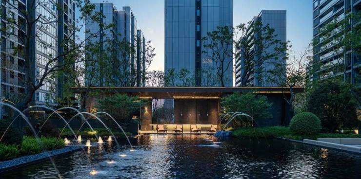 取境星级酒店户外落客区及杭州植物园景观灵感,超大水境、层层叠水、廊架吧台,将度假感融入日常,重新定义奢居排场。