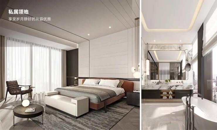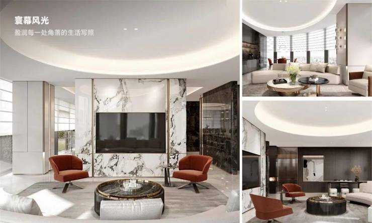 步入室内,胤璞的空间设计更是将“奢华”与“舒适”完美融合。户型设计上,项目主打大平层产品,面积从数百平米到上千平米不等,每一套都做到了极致的空间利用与功能划分。客厅挑空设计,搭配顶级品牌的家具与装饰,营造出一种尊贵而不失温馨的居家氛围。卧室、书房、衣帽间等功能区则更加注重私密性与实用性,每一个细节都透露出设计者的匠心独运。
