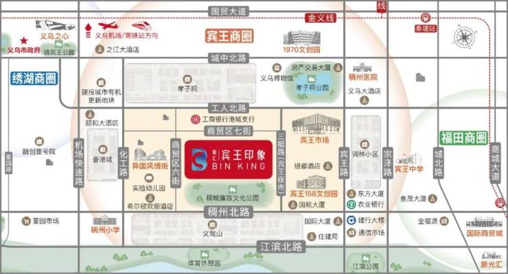 新汇·宾王印象,传承义乌的精神文脉并焕然升级,于宾王商贸源址之上,汲取全球先进理念,将开放街区、社区商业、品质住宅、公园绿化等融为一体,塑造同步国际潮流的街区生活方式,以迭代升级2.0版宾王商贸区之势,筑就世界义乌的街心著作。