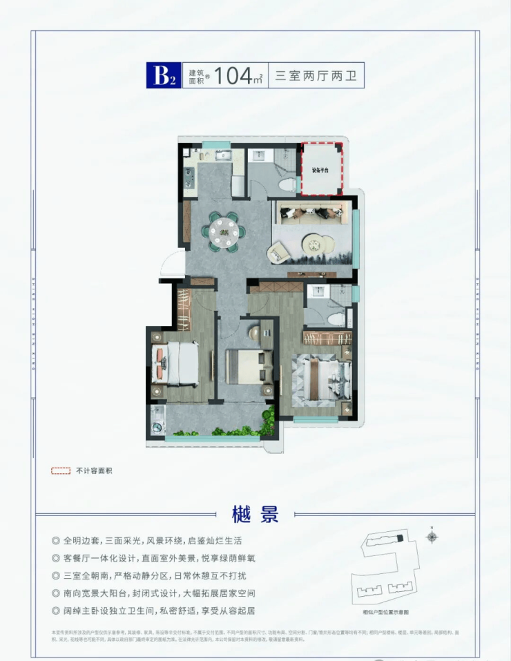 宾王印象在建面约82-104㎡的产品空间上都做到了三房,并且每一款都兼顾家庭需求,对应当下多孩的来临,堪称质感生活的典范。