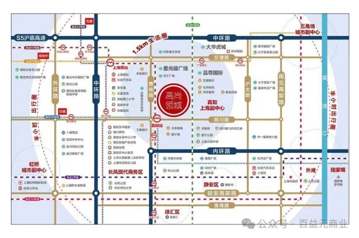 上海四大城市副中心之一,坐拥21.5万㎡真如绿廊生态氧吧,毗邻280米地标商务集群,未来商业体量超百万方。板块定位为“西上海商务枢纽”,发展潜力对标徐家汇。