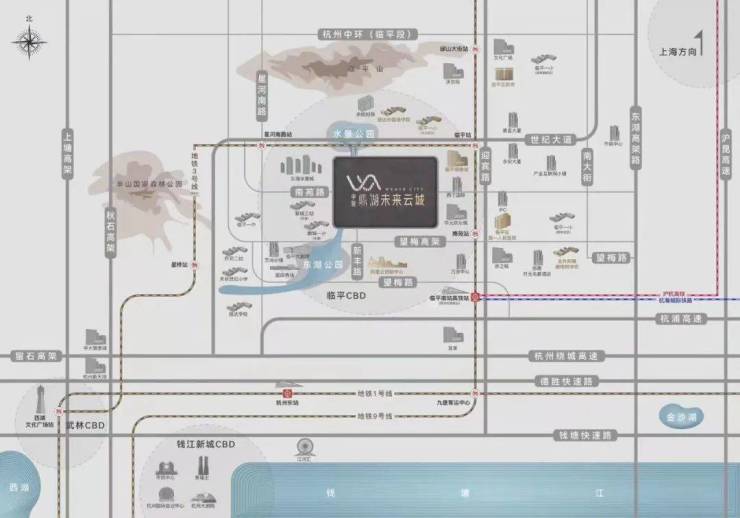 项目近邻地铁9号线南苑站、临平站,快速畅达临平南站,同时便捷接入东湖高架、秋石高架等四横三纵路网。未来当地铁9号线与高铁穿越繁华,奔驰而来,临平与杭州实现无缝连接,一座开放式的超级TOD生活枢纽在此形成。