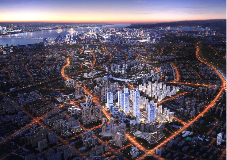 中骏·鼎湖未来云城以2km空中连廊,将人居住宅、甲级商办、活力街区等有机串联,互联、共享、复合,以空中连廊实现多地块联动交通,关于人们的喜好志趣与社交需求,统统纳入步行连廊,织就共生精彩的璀璨“星河”。