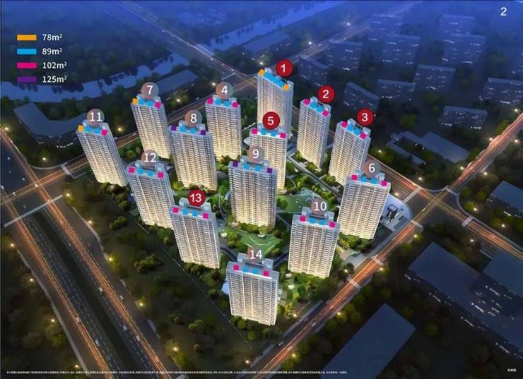 项目是由银城打造的14栋25~26层高层建筑,总建面19.57万方,容积率2.5,绿化率约30%,规划户数约1480户,得房率约75-77%。首批交付时间在2023年底。