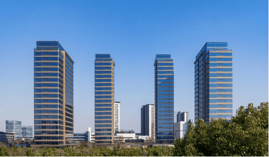 4幢现代高层,晨曦金/江潮蓝外立面(当代建筑团队)