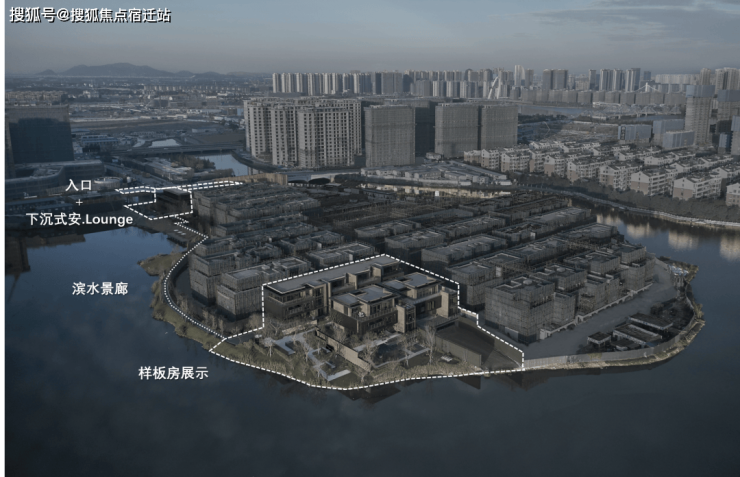 安澜府示范区位于场地唯一的北侧临路界面,契合场所的精神,结合社区入口设置地下亲水安.Lounge,呈现半岛之上的艺术生活场,所见即所得的实景呈现也是未来社区业主步行归家流线的必经之路。