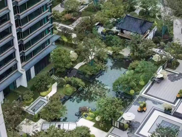 缦云以"园中有园"的造园理念,打造约6000方江南意境园林。入口处耗资约30万定制的故宫铜狮守护门庭,迎面一株价值50万的"君子松"卓然挺立,开启归家的第一道仪式感。