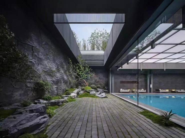 项目规划"社区+街区"双会所,涵盖恒温泳池、健身空间、瑜伽室、咖啡厅、茶室等多元功能。地下泳池采用四泳道设计,长度约22.4米,墙面镶嵌艺术玻璃,营造沉浸式光影体验;健身空间配备进口器材,落地窗外即是园林盛景,运动同时尽享自然意趣。