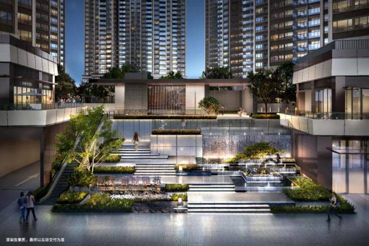 ✅【高抬水韵主入口】主入口叠水流瀑搭配罗汉松,高抬轩昂门庭彰显尊荣威仪,于步步高升中体验归家的仪式感。