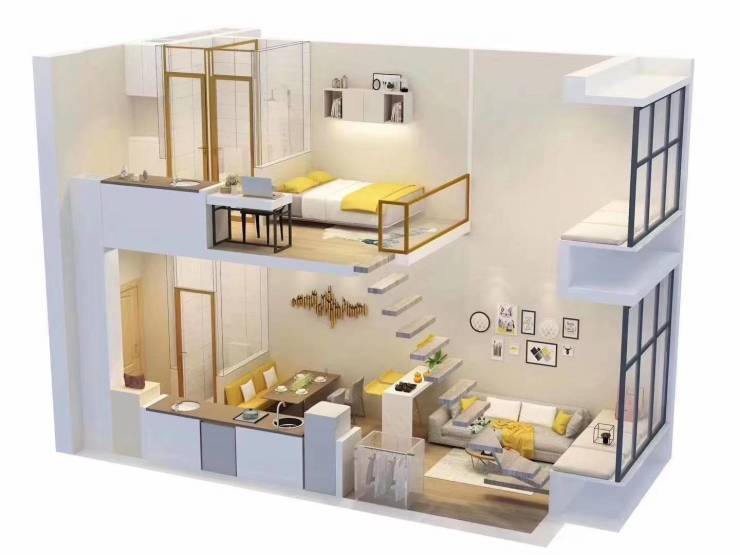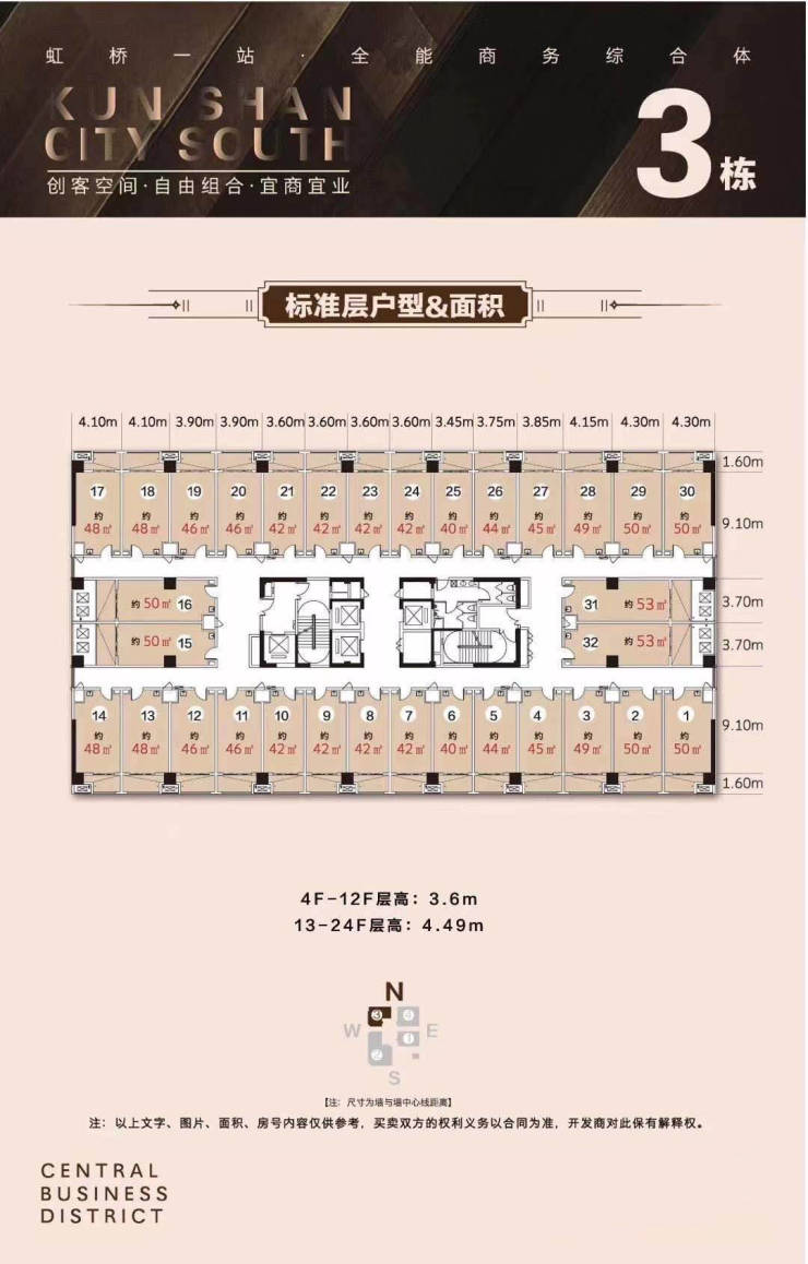 13-24楼层高4.49米挑高16000-17500元/㎡,总价70-90万