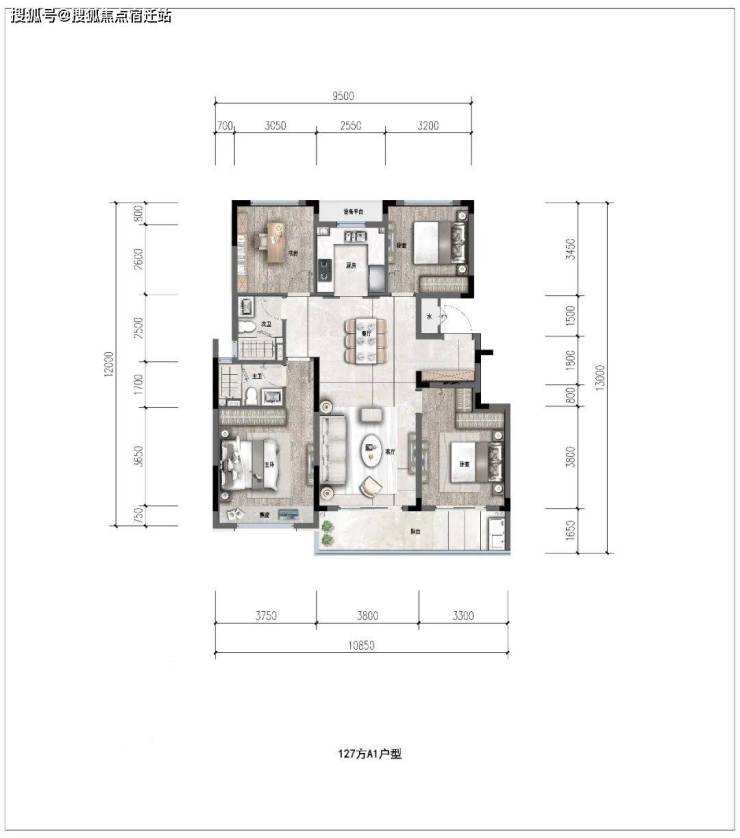 约127㎡经典四叶草户型,全明通透,4个功能间分别位于四角,正好契合了当下注重隐私的居住潮流。