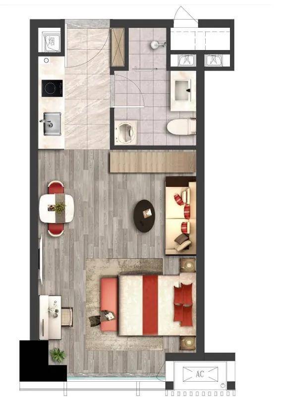 45㎡精装公寓 拎包入住,全景落地玻璃