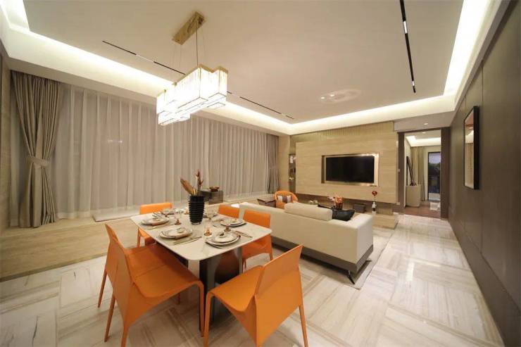 配合宽约6.2米的巨幕飘窗,气场十足,不仅拓展了生活空间,也拉近了人与小区景观的距离,为业主提供了更丰富的沉浸式生活体验,三五好友火锅聚会、闲来无事小酌几杯,都绰绰有余。